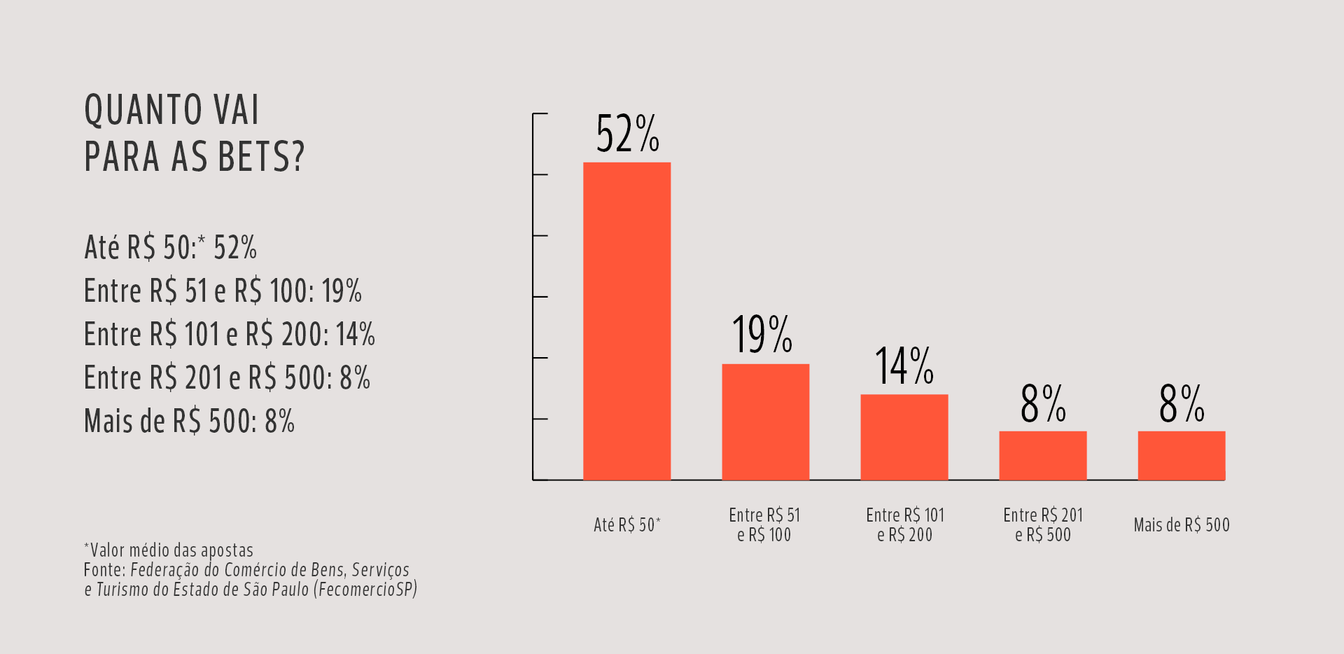 Não é a mesma percepção de Vasconcellos, da FecomercioSP, que costuma rodar o interior de São Paulo em eventos e palestras para os empresariados locais do setor. “As pesquisas ainda não conseguiram captar, mas muitos setores afirmam que as apostas já contribuem para as dificuldades atuais, agravando a inadimplência e a pressão sobre o orçamento familiar.”