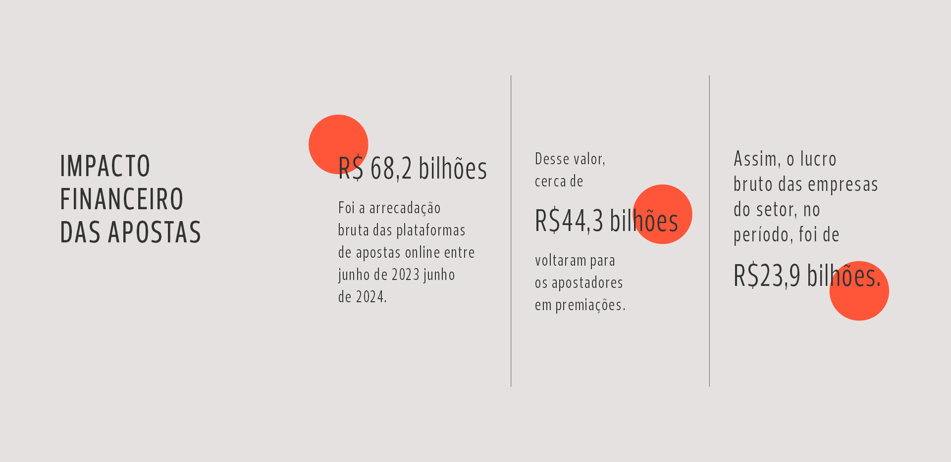 No início de agosto, refletindo a preocupação de outros setores produtivos do País, o banco Itaú publicou um extenso estudo a respeito dos impactos das plataformas sobre a vida financeira dos brasileiros. Os dados mostram que só as taxas de serviço pagas pelos usuários, entre junho de 2023 e o mesmo mês deste ano, somaram R$ 24,1 bilhões. No mesmo período, houve uma queda de R$ 200 milhões nos prêmios pagos pelas bets aos clientes. Considerando os montantes totais gastos nessas plataformas — ou seja, taxas e valores efetivamente apostados, sem considerar premiações pagas —, a soma chega a R$ 68,2 bilhões (ou cerca de 0,6% do PIB nacional). Desses, R$ 44,3 bilhões voltaram aos usuários em formato de gratificações, o que significa, portanto, que aproximadamente 36% desse dinheiro todo ficaram com esses sites. A despeito das cifras altíssimas, o Itaú ainda acha cedo afirmar que as bets estejam afetando outros setores, como o varejo. “Até porque as vendas têm apresentado resultados dentro do esperado”, diz um dos trechos do relatório.