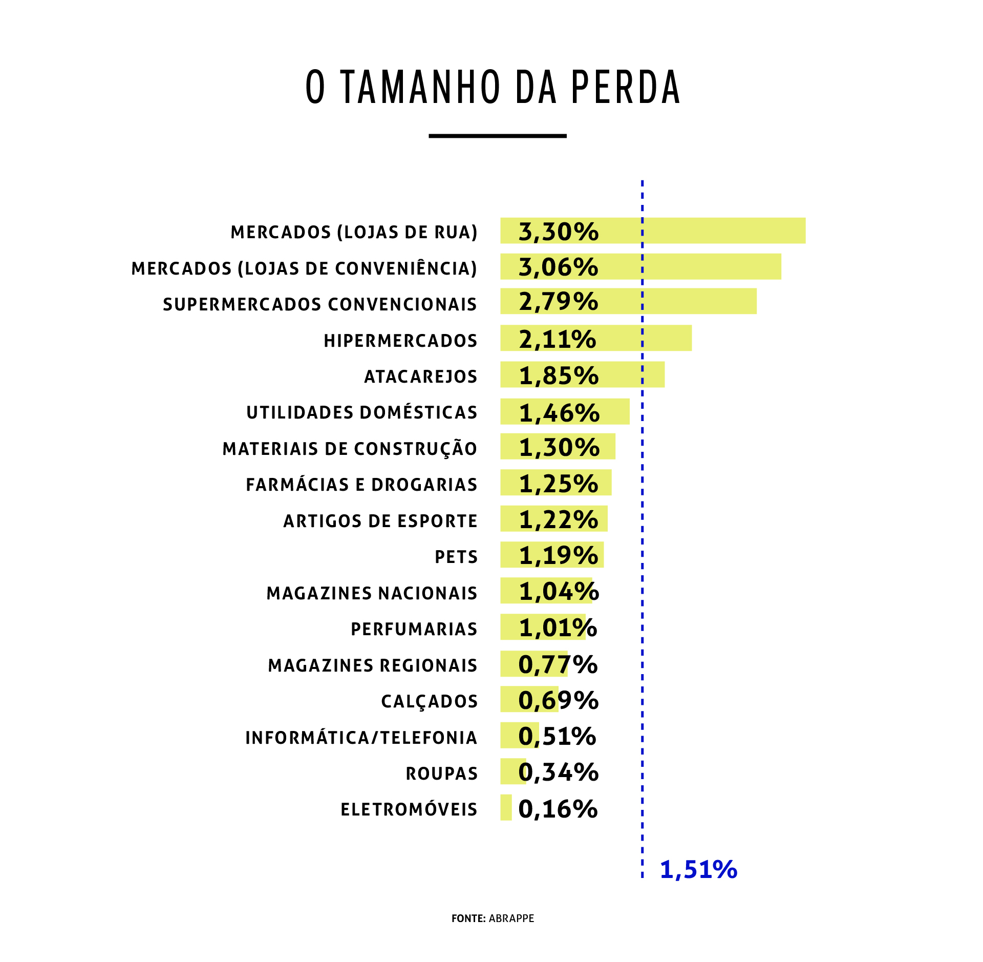 Carlos Eduardo Santos, presidente da Abrappe, explica que é possível fazer uma divisão entre dois tipos de negócios diante desses dados — aqueles que conseguem gerir melhor as perdas e os que não têm essa condição. “Se uma empresa administra bem as perdas, o impacto é verificado nas margens de lucro e, a partir disso, pode ser mais agressiva nos preços. Isso significa aumento de competitividade e, claro, mais vendas”, explica. “Mas, no caso de empresas que não conseguem fazer essa gestão, a margem fica menor — elas sobem o preço e perdem competitividade ou, então, seguem com a margem menor, o que pode inviabilizar o negócio”, completa.